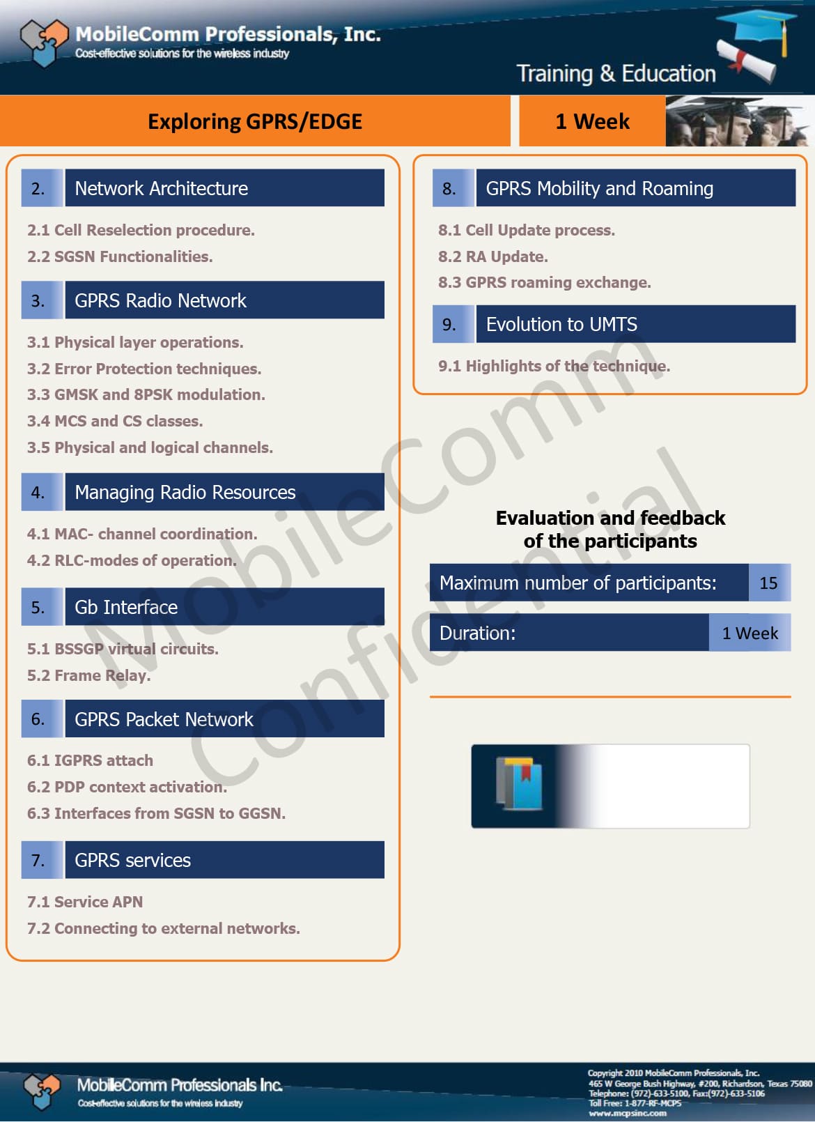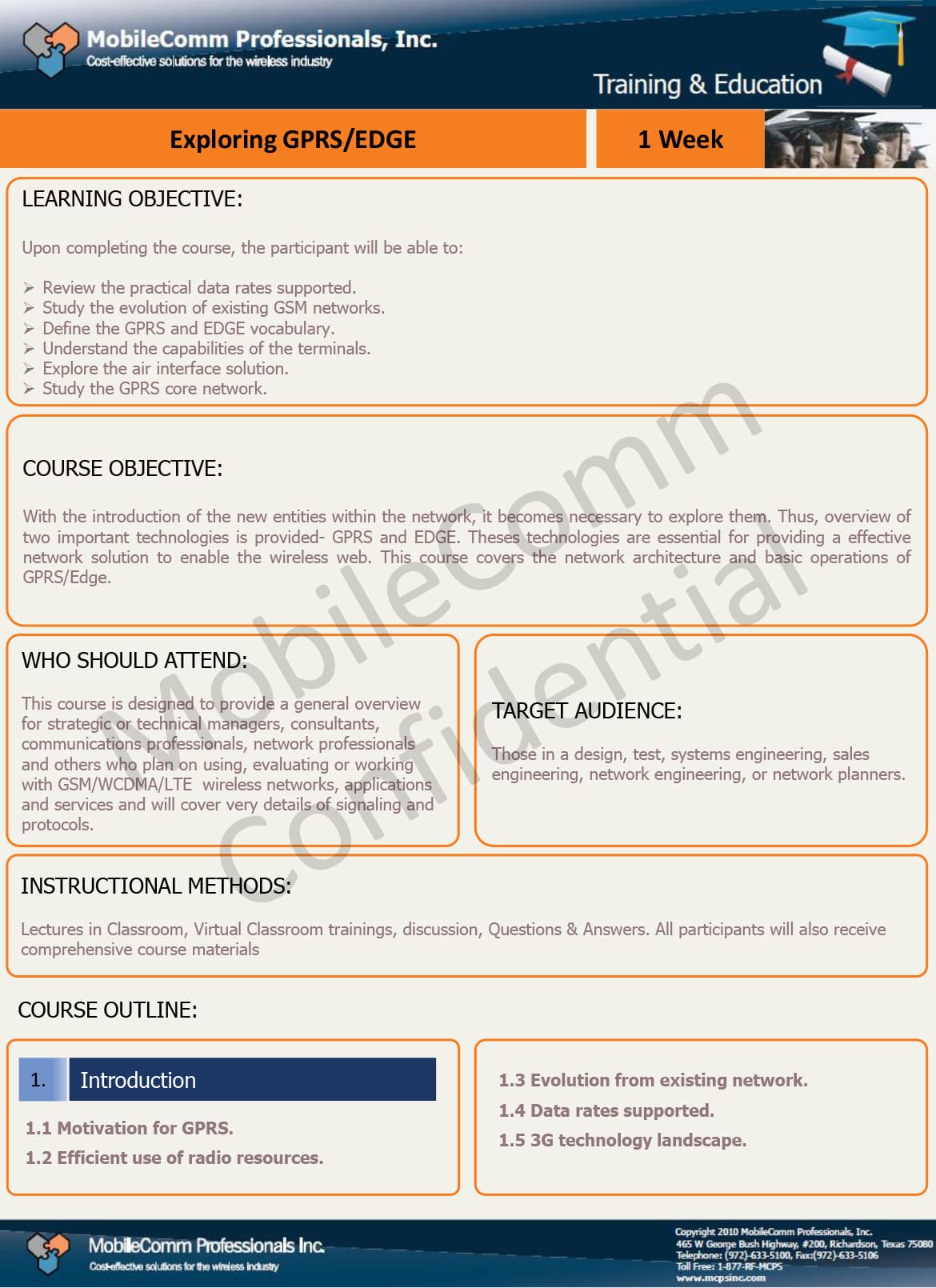 MobileComm’s GPRS/ EDGE curriculum has been designed to provide with a foundation in GPRS principles, services, operation and its integration with GSM networks. For anyone who needs to know more about GPRS, this course will provide them with a detailed analysis of the workings and implications of GPRS. Our GPRS courses also examine the Quality of Services issues with the implementations of GPRS and examine the roles of EDGE, EGPRS and GPRS in 3G networks.